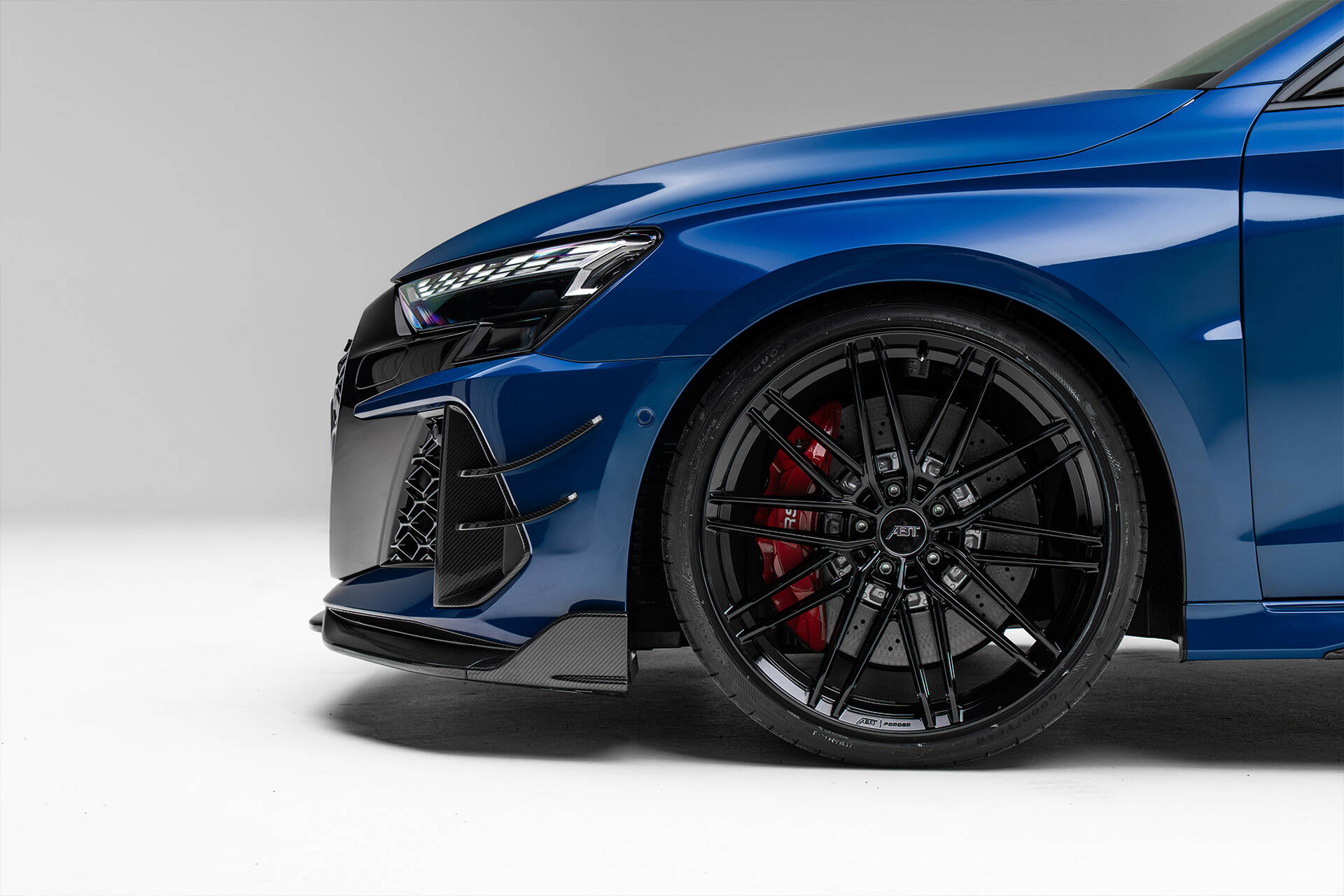 Die ABT HIGH PERFORMANCE HR20 Schmiedefelgen mit 245/30 R20 Bereifung, kombiniert mit einem straff abgestimmten Fahrwerk mit speziellen ABT Fahrwerksfedern und Sportstabilisatoren, gewährleisten souveräne Bodenhaftung und präzise Kurvenstabilität. Dank des Fertigungsverfahrens der Felgen in Schmiedetechnik wird ein struktureller Leichtbau erreicht, der die ungefederte Masse reduziert und so ein messerscharfes Handling sowie maximale Kontrolle in jeder Fahrsituation sicherstellt.